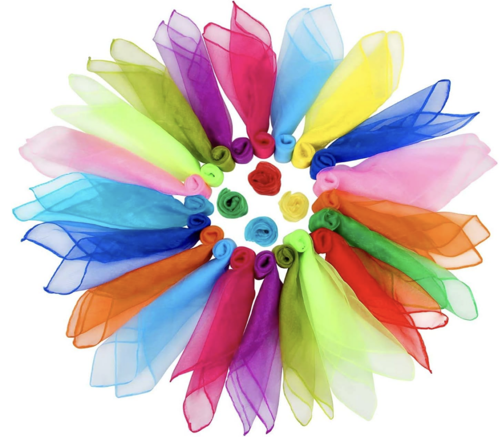 These play scarves are such a fun idea for Easter basket stuffers! Looking for fun ideas and ways to play? Check out these activities using streamers and these scarf games for kids!