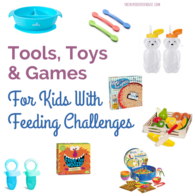 After working with our own picky eaters at home and consulting with our friends who are feeding specialists, we’ve put together a solid list with some great suggestions for tools, toys, and games to help support picky eaters at home or in the therapy room!